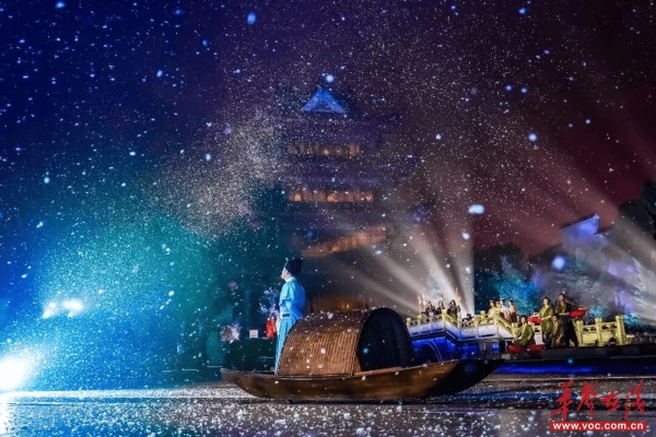 备受关注的湖湘文化主题光影秀也将在活动期间回归,每日19:30起上演1至2场,具体场次以当日实际安排为准。演出以600平方米水上画境为舞台,融合声光影电技术,重现“江天暮雪”经典场景。剧情围绕宋迪寻创作灵感展开,通过屈原涉江、辛弃疾舞剑等经典画面,展现潇湘大地的豪情与烟火,诠释潇湘文化的独特内涵,让游客在视觉与听觉的双重体验中感受湖湘美学魅力。