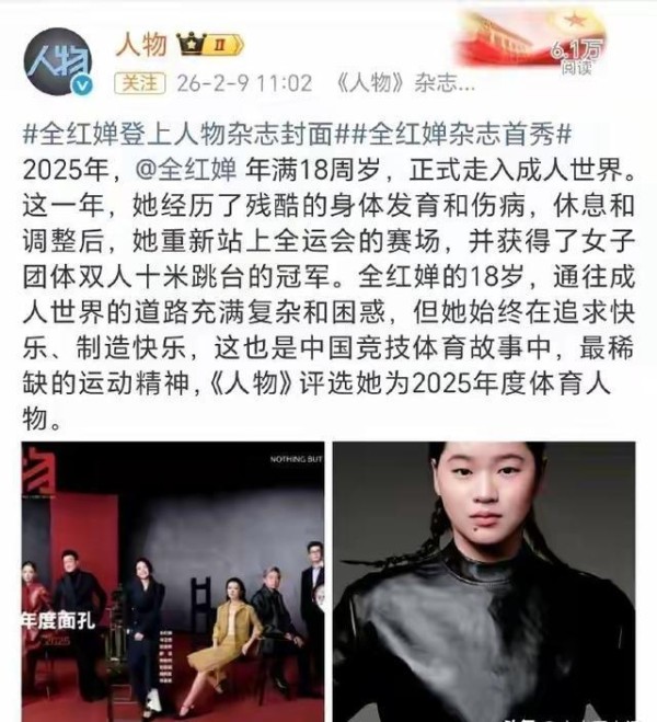 2月9日晚,《人物》杂志2025年度面孔官宣,全红婵携手梁家辉、舒淇等明星登上封面,离农历新年不到7天的这份惊喜,让网友们炸开了锅。
