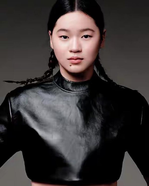 翻开杂志内页,18岁的她造型亮眼:扎着俏皮双马尾,身着挺括黑色皮衣,搭配红色领带,少女的灵动与少年的飒爽完美融合,安静站在合影边缘却自带追光,和跳台上那个专注跳水的“天才少女”判若两人。
