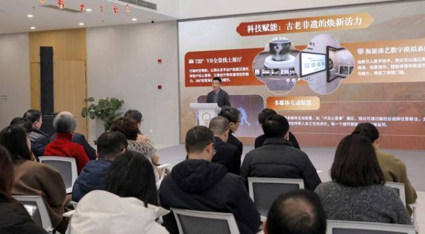 该馆最大亮点是科技含量高。展馆不仅运用数字孪生与VR技术,构建起跨越时空的“数字文化共同体”720VR全景展厅,让观众可以沉浸式练习卢氏心意拳、观赏江南丝竹全息演奏,并能360度细览海派瓷艺《荷美》瓷缸的细节;还引入人工智能技术,通过海派漆艺等项目的数字模拟系统,观众可自由调漆、智能生成纹样,在虚拟创作中深度感受工艺逻辑与美学特质,让中华优秀传统文化在数字世界中持续进化、生动可感、触手可及。