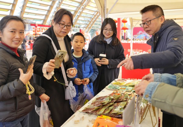 2月11日,市民在村糖会现场选购食品。 新华社记者 刘坤 摄