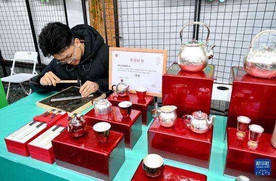 2月11日在福州上下杭历史文化街区拍摄的银器制作摊位。