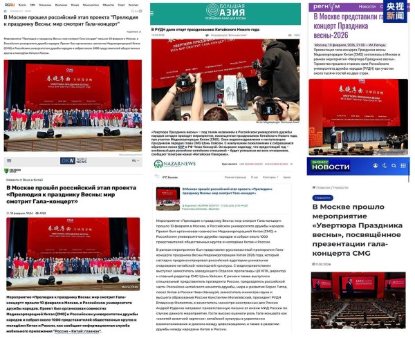 截至目前,今日俄罗斯电视台、俄罗斯大亚洲电视台、哈萨克斯坦阿塔梅肯电视台、《俄罗斯报》《劳动报》《观察报》、俄罗斯Regnum通讯社、吉尔吉斯斯坦纳扎尔新闻通讯社、乌兹别克斯坦新闻网和格鲁吉亚第比利斯新闻网等多家俄语地区主流媒体对“春晚序曲 全球看春晚”俄罗斯专场活动进行了报道。