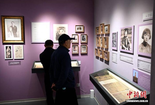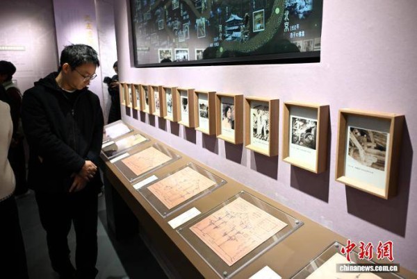 图为林徽因参与国徽设计的相关文献资料吸引参观者。中新社记者 吕明 摄