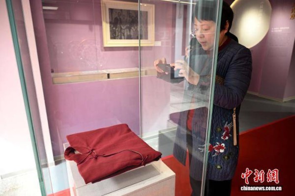 图为林徽因亲手缝制的旗袍吸引参观者。中新社记者 吕明 摄