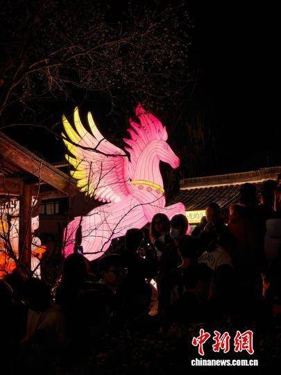 2月14日,非遗灯会吸引游客。当日,上海蟠龙天地新春活动将传统年俗与江南水韵完美融合。非遗灯会璀璨点亮,水上鱼灯巡游如梦似幻,龙马庙会市集热闹非凡,为申城新春增添一抹别样的江南烟火气,吸引市民游客纷纷前来感受年味。中新社记者 汤彦俊 摄