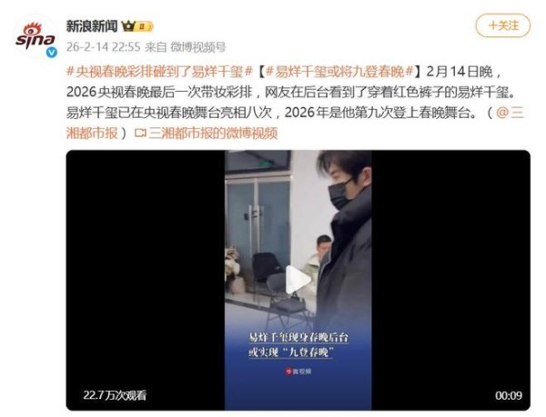 2月14日晚,2026年央视春晚最后一次带妆彩排的后台,一条醒目的红色裤子让易烊千玺再次成为焦点。这抹亮色不仅迅速冲上热搜,更预告着一个新纪录的诞生——这已是他第九次站上这个全球华人瞩目的舞台。