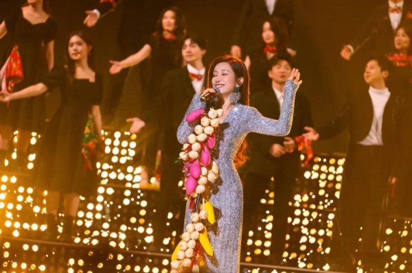 不仅有传统艺能大放光彩,联欢会还将最近翻红的《大东北我的家乡》搬上了舞台。此前,B站用户用AI技术对经典东北歌曲进行重新编曲,民俗音乐与高雅音调碰撞出奇妙火花,联欢会上,节目《歌来美音乐现场》生动诠释着“民族的就是世界的”。秦海璐站在绑着大蒜、红辣椒、玉米的话筒立麦前,优雅地用女高音唱着“大东北是我的家乡,我就在这嘎达土生土长”,合唱团手拿花手绢、大葱等诸多带有东北标签的物件,雪花飘落,唢呐一响,一股野生而蓬勃的原始张力扑面而来。