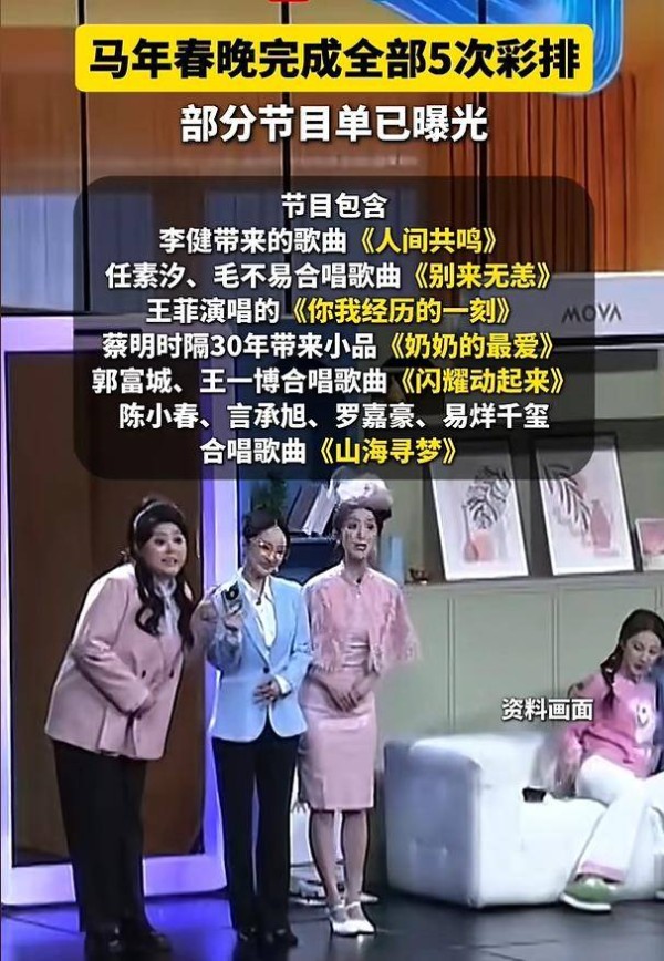 2026年2月14日,马年央视春晚完成了第5次彩排,部分节目单曝光。