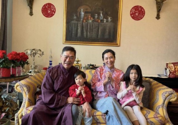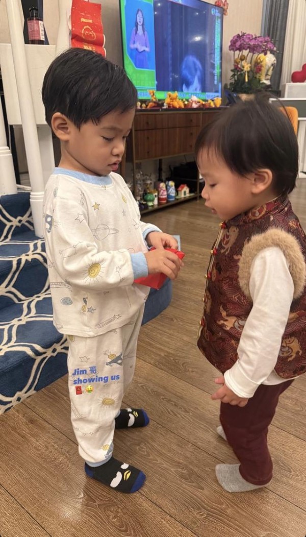 应采儿同俩儿子晒拜年照 穿中式红色马甲恭贺新年63岁何超琼陪干女儿过年,穿红衣还有少女感,比小24岁曾美慧还俏