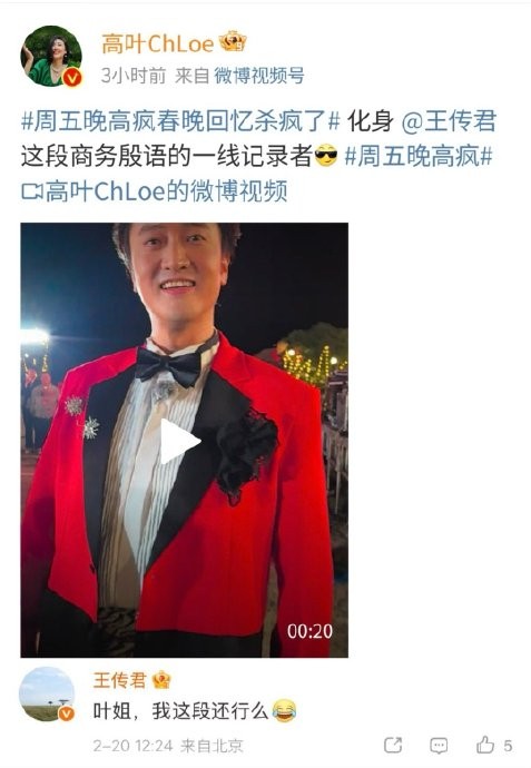 #王传君被高叶拍害羞了# 真的要被王传君和高叶笑死!谁能想到平时看着沉稳内敛的王传君,私底下居然这么会撒娇啊!对着高叶认认真真演完一段“商务殷语”然后评论问:叶姐,我这段还行么?两个人真的太好玩了,没有刻意的营业感,只有老友间的彼此捧场,懂事的导演已经递本子了!#周五晚高疯#
