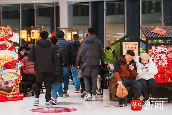 逛得尽兴,更要吃得满足。在金陵STYLE、艾尚天地等“年轻力”满满的时尚街区,各家餐厅门口等位区坐满聊天的年轻人,火锅升腾的热气、铁板滋滋的油响、碰杯时的清脆欢笑交织在一起,让年味越滚越浓。