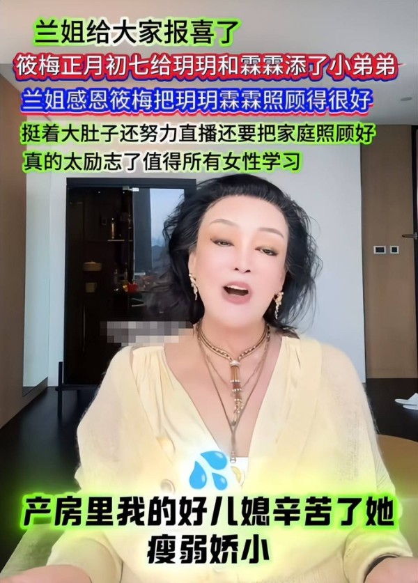 2月24日,张兰猝不及防官宣了一则好消息,其儿子汪小菲三胎喜得儿子,再次当奶奶的她透露了儿媳妇马筱梅产子细节,透露孩子是大年初七生的。