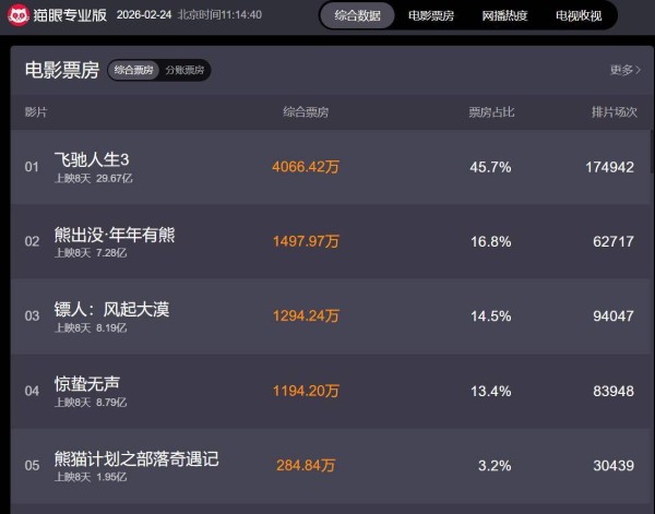 2026年春节档圆满落幕,总票房突破55亿元,平均票价降至47.9元,创下近五年最低纪录。与去年由超级爆款《哪吒2》引发的热潮相比,今年的春节档显得更加平稳理性。然而,正是在这股平稳中,武侠江湖的风沙却掀起了最大的惊喜。由《镖人:风起大漠》所呈现的硬派武侠片凭借过硬的口碑,连续几日票房稳步上升,最终跃居第三名。这部影片以一场逆袭之势,从预售期的中游位置杀入票房前三,且仍显现出强劲的上升势头。许多观众,特别是那些心怀武侠情怀的人,纷纷表示:这才是他们真正想看的武侠片——真刀真枪、拳拳到肉,打得过瘾,展现了那个心怀江湖的真武侠世界。