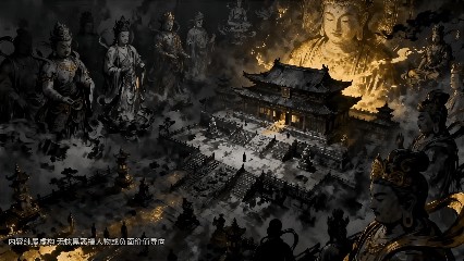 很明显,这是基于《西游记》经典桥段“真假美猴王”进行的二创,而且属于“阴谋论”式的暗黑改编。从画风来看,作品的水墨质感较强,黑金二色为主,显得压抑却不失庄严,符合这种“黑神话”的基调。