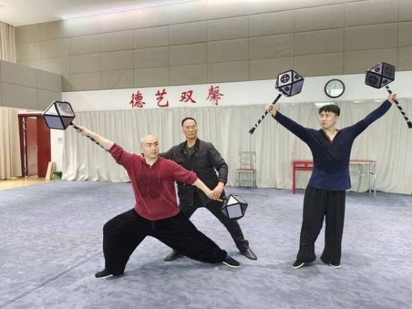 自张翼鹏先生45岁去世,这个版本的《四平山》因此搁下。2023年,由张翼鹏之子、时年83岁的张善麟亲授,徐朝嬴、徐朝皝兄弟俩学习了这部南派武戏经典。当年,张翼鹏和弟弟共同演绎了这部作品,60多年后,延续新一代梨园兄弟佳话,徐朝皝、徐朝嬴带着“新盖派”《四平山》“重出江湖”。尤其可贵的是,张善麟老师以数月时间,为花脸演员徐朝嬴口传心授武生表演精髓。这份跨行当的传承,让徐朝嬴得以突破行当限制,所演绎的裴元庆神形兼备,更贴近人物英武气韵。