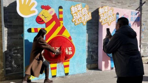 古风美陈与古城景致相得益彰。发财铃、新春鼎等特色装置遍布十字街区,一步一景,游客可随手拍下古风大片,定格春日逛园的美好瞬间。记者 贾尚志 图片来源 太原古县城