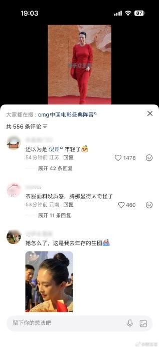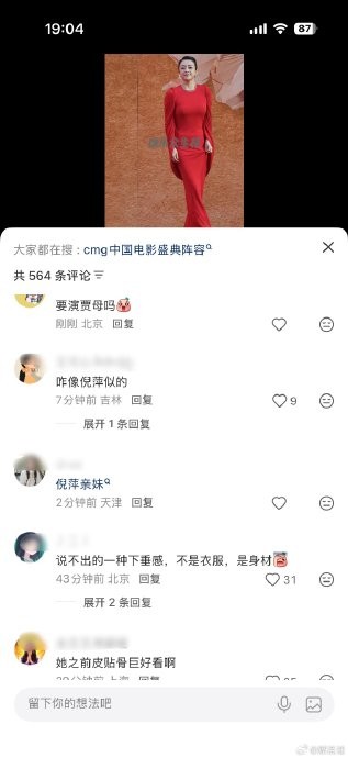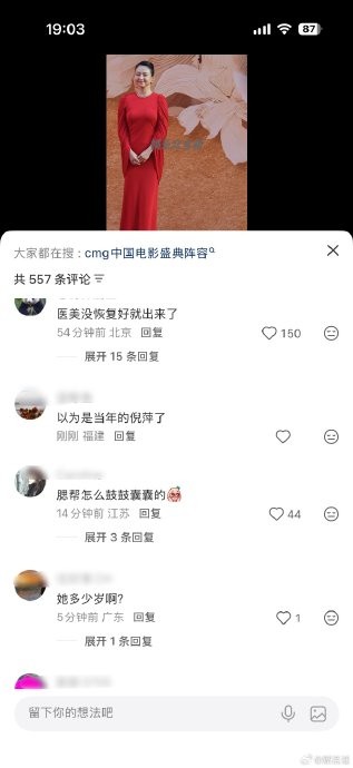 #章子怡穿的比红毯还红# 网友说今天章子怡像年轻版的倪萍