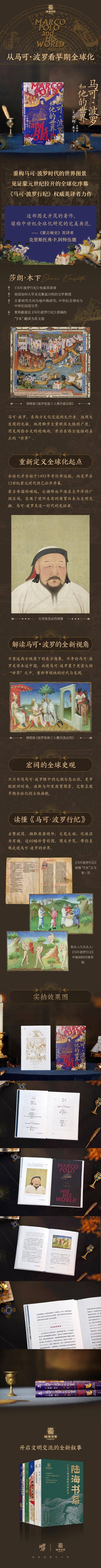在猎奇与考证之外,美国学者莎朗・木下为解读马可・波罗提供了全新的角度。她既不重复马可・波罗的传奇经历,也不纠结于《马可・波罗行记》所述与历史是否严丝合缝,而是将关注点从马可・波罗个人延伸至他所处的那个非凡时代。