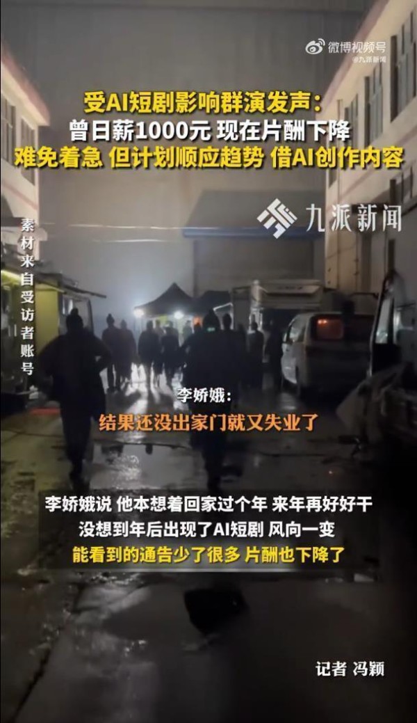 短剧演员曝AI挤压生存:日薪从1000元降至600元,横店遇冷无戏可拍