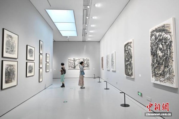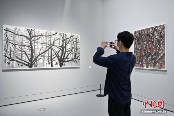 3月22日,“充实而有光辉——崔振宽艺术巡展·广州”开幕式在位于广州市的广东美术馆举行。本次展览是崔振宽从艺七十载的回顾性巡展,汇聚其各时期代表作品。图为展览吸引参观者。中新社记者 陈楚红 摄