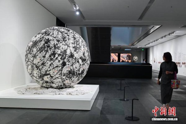 图为崔振宽作品《无始无终》吸引参观者。中新社记者 陈楚红 摄