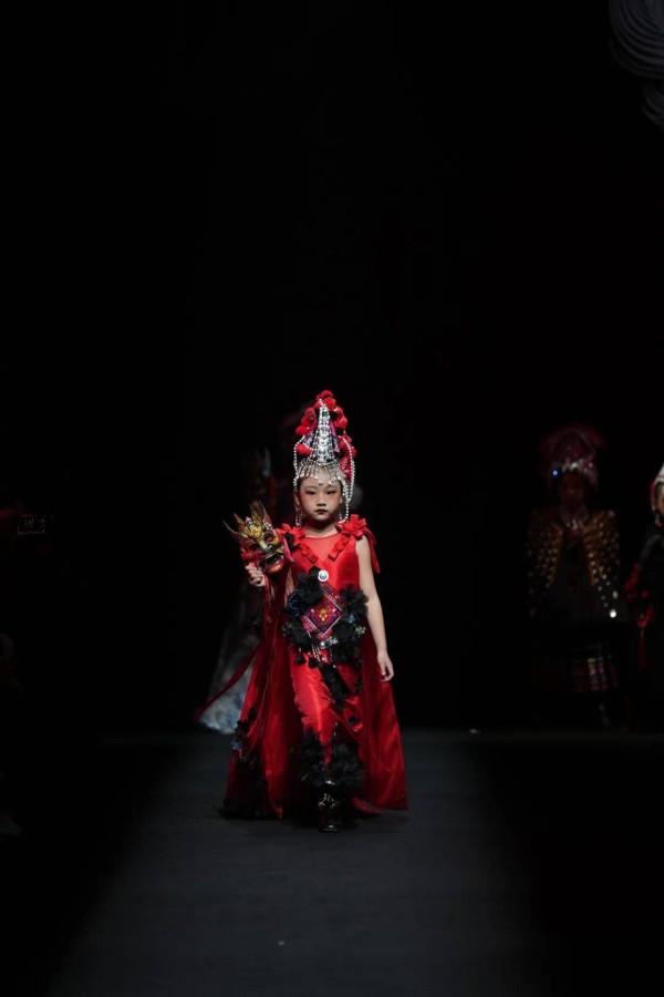 专场秀中,服饰分为儿童装与成人装两大系列,精准覆盖不同群体审美需求。其中46套儿童装围绕彝绣传统纹样与现代潮流的融合,打造了“国风古韵的国潮路线、唯美梦幻的绿野仙踪、清雅脱俗的青花系列、传统纹样的现代服饰改良”四大主题路线,将火焰纹、葫芦纹等经典彝绣元素与儿童服饰的灵动特质相结合,兼具观赏性与实用性。其余23套成人装则主打“民族韵、国之美”,在保留楚雄彝绣核心技艺与文化内涵的基础上,通过简约廓形、轻盈面料的运用,对传统彝绣服饰进行现代化改良,打破了非遗服饰“小众化”“场景化”的局限,让彝绣元素能够自然融入日常穿搭,实现了“民族风”与“时尚感”的双向奔赴,彰显出东方美学的独特魅力。
