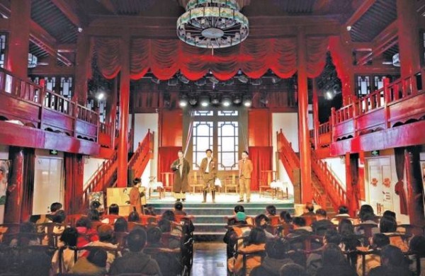 春暖花开的三里河畔,古香古色的颜料会馆中,沉浸式悬疑话剧《宋美龄耳环丢了》正在驻场演出。