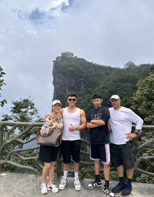 两个儿子的身高、体型,都遗传了父亲,一看就是身材很结实。而两个儿子的五官长相更像妈妈、就自然比父亲还要帅气很多。