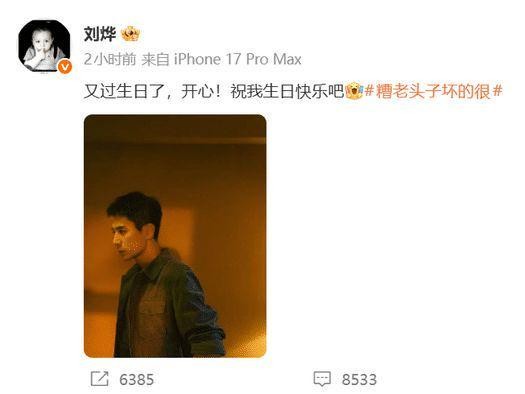 厉害的是刘烨自己给自己要生日祝福,一句祝我生日快乐吧,尽显刘烨性格里的那份直爽。最有意思的是刘烨发文选择的词条是#糟老头子坏的很#,自己生日选择如此词条,然后配图是自己帅到没边的照片,这前后的对比那是相当的强烈。