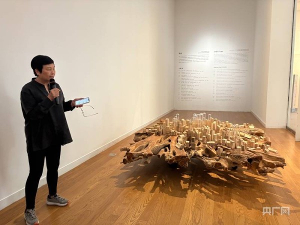 艺术家沈远介绍她为深圳创作的作品《城中村,村中城》(央广网见习记者 钟金秀摄)