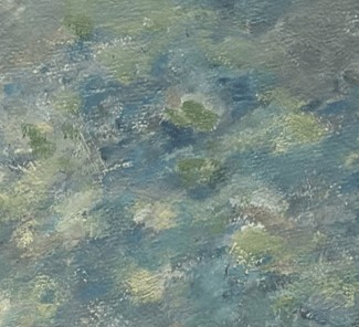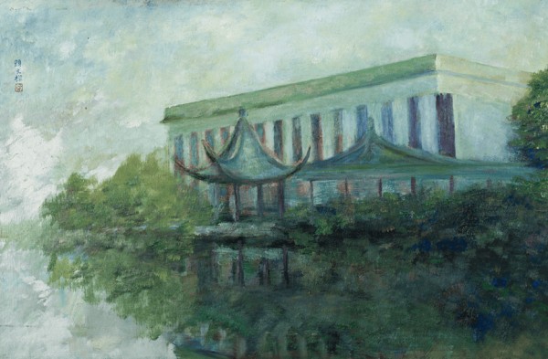 1985年的《沧浪夏夜》,是他的绝笔之作。月光漫洒沧浪亭、美专教学楼与湖岸。树影映水、绿调交融。水天一色间,尽是93岁老人对毕生耕耘的苏州美专的深情牵挂。