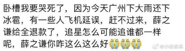 因为下雨很多设备都坏了,觉得效果不好,就说给大家退票,机酒全报,这看了谁能不爱上薛之谦