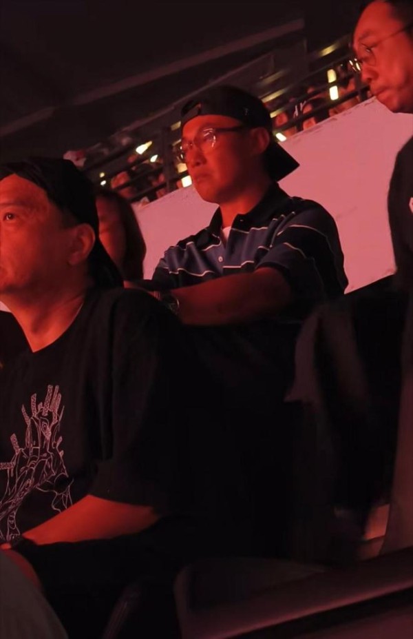 我看了一下网友分享的画面,陈奕迅在台下戴着帽子,表情十分严肃。