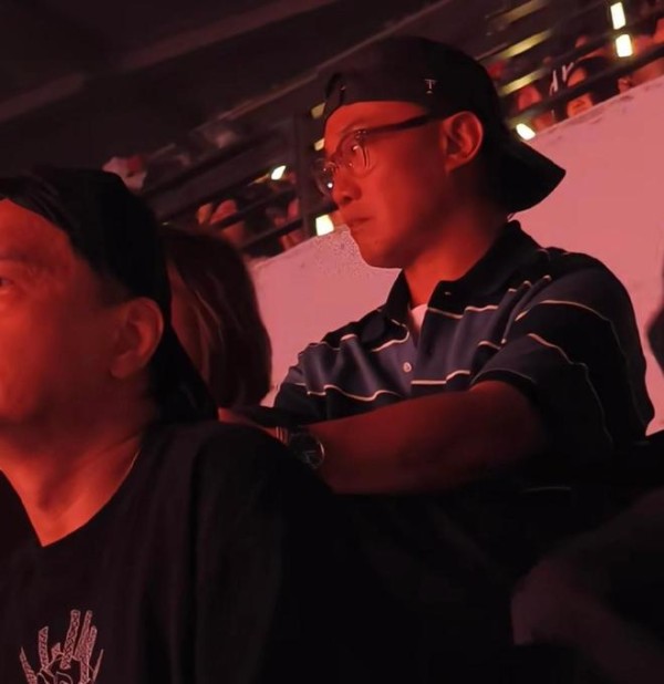 周围所有人都在笑、在喊、在跟着唱,就 Eason 一个人,反戴棒球帽压着眉,黑框眼镜后面的眼睛死死盯着舞台,胳膊全程抱在胸前,脸绷得难受。