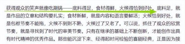 食材得先则强调内容和语言要贴近生活,得活泼且接地气,紧跟时代潮流。传统的东西当然需要保存,但如果想要走得更远,就得与时俱进,创新是相声创作的生命力所在。不能老是翻老梗,做一些过时的包袱,而是要从现实生活中发掘新鲜的素材,动脑筋去打造能打动当下观众的笑料。最后,火候得恰到好处则是对表演节奏的精确把控,尤其是包袱抖出的时机,既不能拖拉,也不能过于激烈,要精准掌握,才能把笑点最大化。老相声中常说的三番四斗,其实就是这个道理。