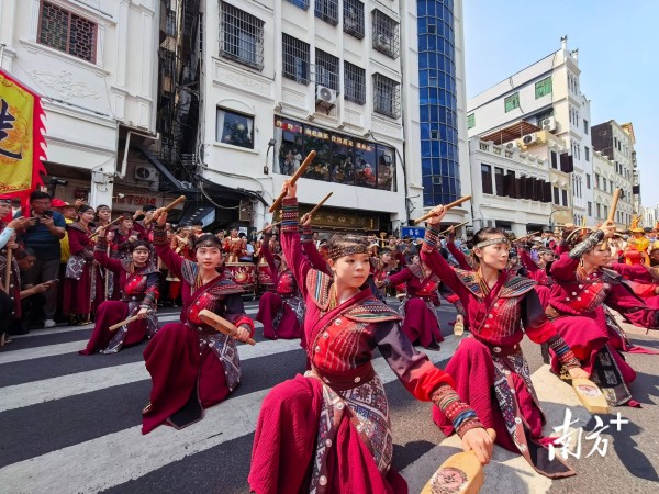 这是2026年(第二十五届)海口冼夫人文化节分会场的一幕。据了解,每年农历二月初九,海南各地民众都会自发聚集到海南冯宝冼夫人纪念馆广场前,举行装军出征表演等民俗活动。茂名作为冼夫人信俗的发源地之一,带着发扬传承千年文化根脉的茂名冼太舞,在这里开启了海南巡演之旅。