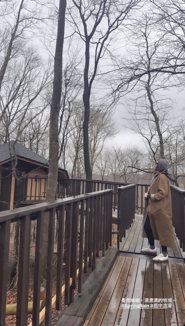 刘嘉玲在社交平台上晒出了全家在日本当地牧场郊野的照片,从照片可见,当地环境清幽,人烟稀少,不过景色看起来显得有点落寞、荒凉,四野都是枯枝老树,地下堆满了落叶,天气还阴沉沉的,并下起了雨,完全没有春意盎然的氛围。好在对刘嘉玲来说这也是另一种风情,她留言称“春雨绵绵,湿漉漉的牧场”,还称这是雨中的浪漫。