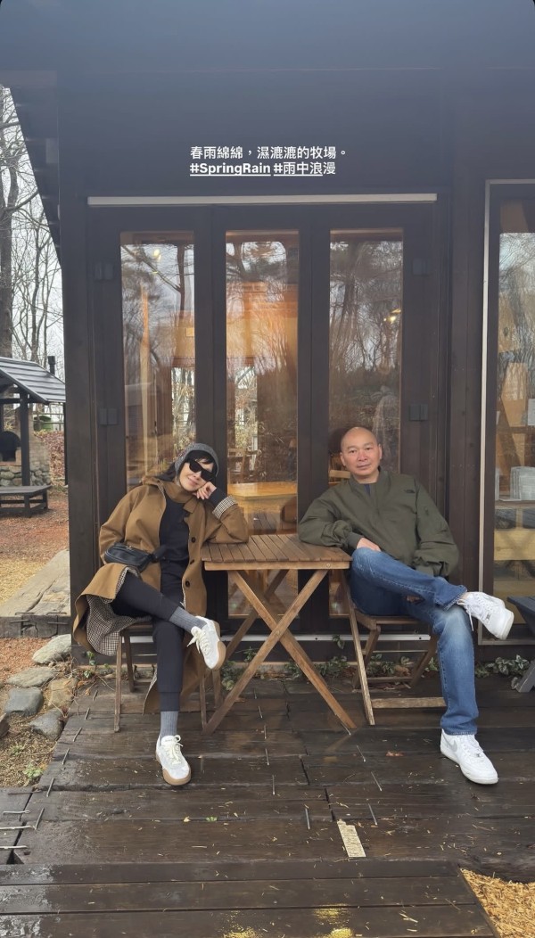刘嘉玲除了晒出景观的照片,少不了的还有与家人一起的合照。一家人在这个牧场中咖啡厅歇息,出镜的有刘嘉玲的弟弟,弟媳,以及老母亲。刘嘉玲与家人在咖啡厅门口的桌子前坐着合照,当天天气寒冷,只见刘嘉玲包裹了全身,身穿驼色大衣,还戴上了棉帽以及墨镜,俨然就是一副贵妇的装扮。