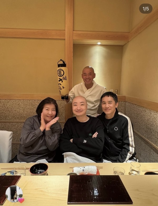 除了与母亲合照,刘嘉玲在同一个位置,也与弟弟来了一张合照。姐弟俩同框,有着相同的坐姿,只见刘嘉玲一手托着下巴,对着镜头气定神闲,而弟弟表情就略显严肃。姐弟俩看起来长得不算太像,刘嘉玲看起来更像母亲,弟弟应该就比较像已故的父亲吧。除了弟弟在场之外,刘嘉玲的弟媳也一同来了日本,显然这就是一趟开心的家庭之旅。
