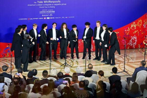 音乐会在北京师范大学北国合唱团演唱的《天空》中拉开序幕,回荡全场的歌声传递出两国青年对友好交流的挚诚心愿。随后,耶鲁大学威芬普夫斯阿卡贝拉合唱团以无伴奏合唱形式演绎《啊,宽阔的田野》《茉莉花》等曲目,展现了跨越文化与语言的艺术感染力。