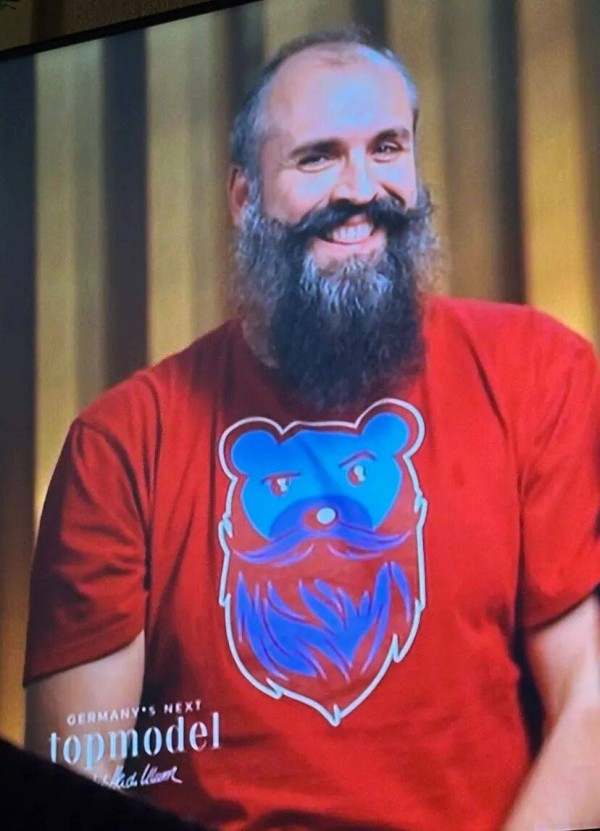 Carsten Montanha来自德国科隆附近的Euskirchen地区,平日里是一名普通的房屋管理员。49岁的他,留着标志性的大胡子,体型壮实,头顶已经秃了,却散发着一种沉稳而独特的男性魅力。他不是专业模特,此前只是和朋友拍过一些照片,但当GNTM的选角机会来临时,他决定勇敢一试。