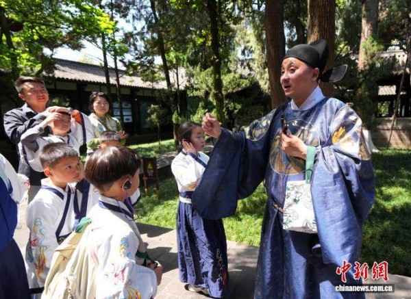 4月4日是清明假期首日,成都武侯祠博物馆迎来大量游客。馆内主要景点如刘备殿、诸葛亮殿前人头攒动,游人如织。来自全国各地的游客趁着假期前来缅怀先贤、了解三国历史,感受传统文化氛围。图为武侯祠博物馆里的三国文化研学课。中新社记者 安源 摄