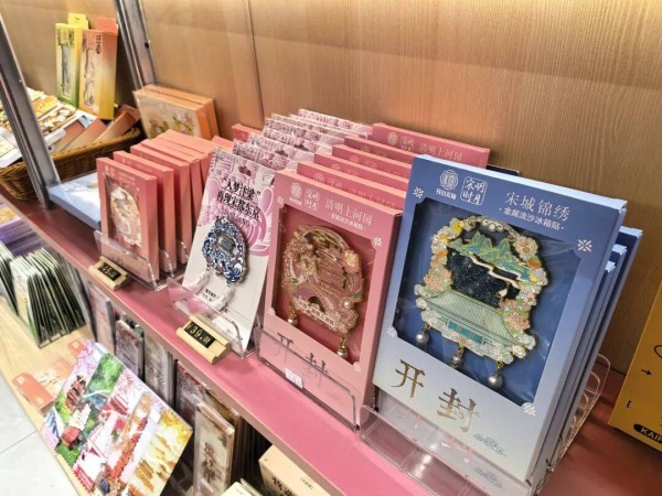 在文化赋能上,各家品牌深度挖掘开封宋文化、菊文化、非遗文化等本土资源,让产品成为城市文化的载体。各家店铺都将清明上河图、开封府、包公、杨家将等宋文化 IP 作为拳头产品,同时推出菊花系列产品,紧扣开封市花特色。以汴京礼物为代表的文创店也紧跟步伐,聚焦宋韵文创开发,将汴绣、朱仙镇木版年画等经典元素融入设计,推出汴绣冰箱贴、包公手提袋、宋风小摆件等便携好物,让游客把 “汴京记忆” 轻松带走。