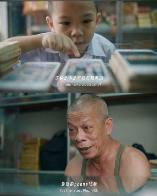 故事不难猜,一个小男孩去纸扎店买纸手机,只为了能联系过世的奶奶。虽然看到开头就已经绷不住了,也能猜中结尾,但它的故事完整动人,且全片毫无AI痕迹,才让它第一个破圈。