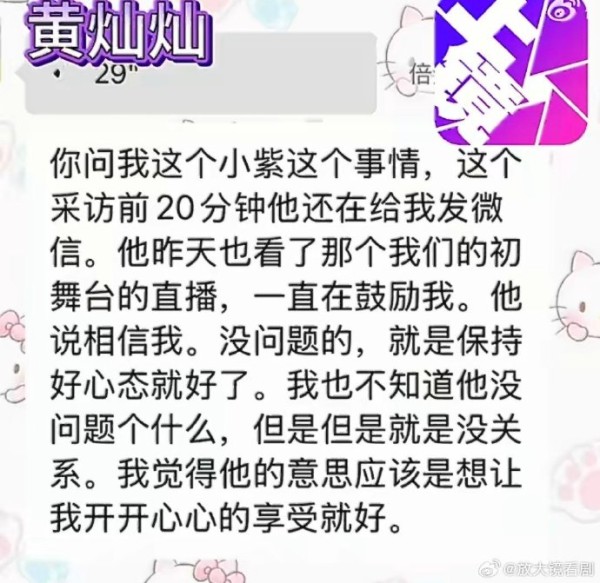 杨紫全程关注黄灿灿初舞台,发微信鼓励好友