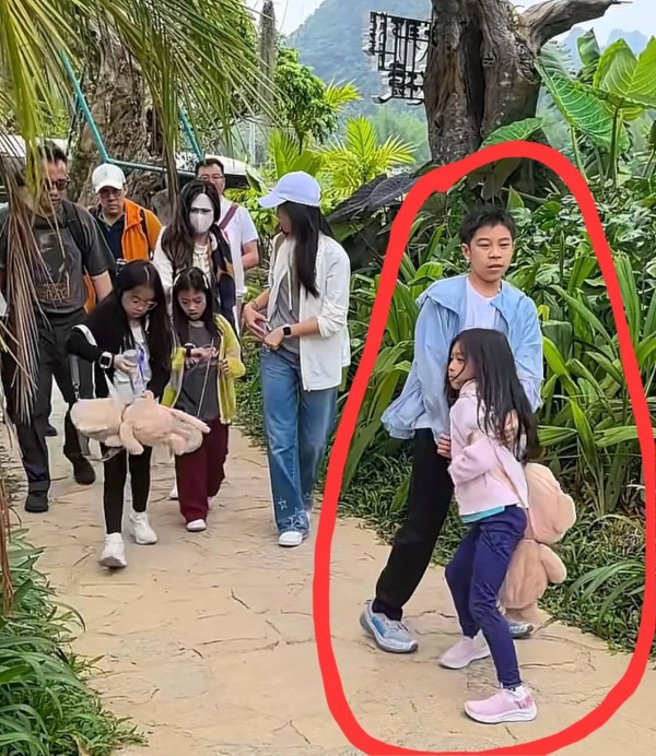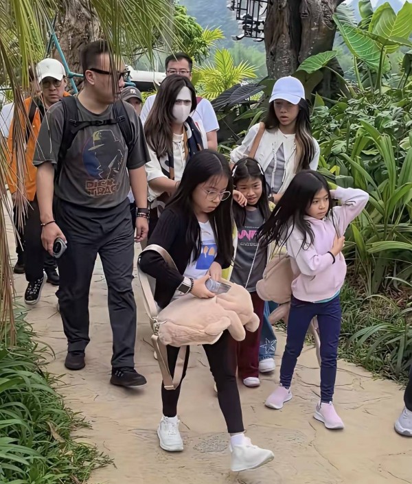 当天霍启刚一人带仨娃,除了导游、身边没有什么保镖或者助理,一起游玩的还有几个小伙伴、不知道是不是半路刚好遇上的。