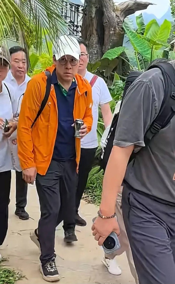 霍启刚带仨娃游广西、这个画面太真实了。当天霍启刚穿了一件橘色外套、戴着白色棒球帽,走在队伍最后、有种快累瘫的感觉!
