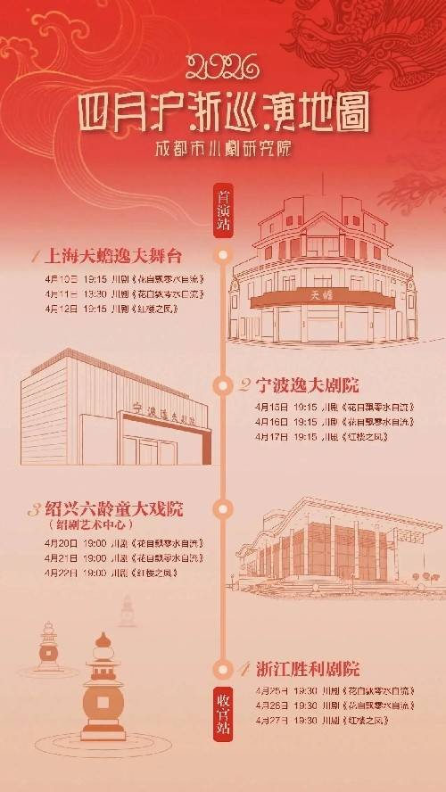 川腔蜀韵,跨越千里;双戏连台,情系四城。此次沪浙巡演,既是一次川剧艺术的集中展示,更是一场跨越地域的心灵对话。当巴山蜀水的慷慨激越,遇见吴越之地的婉约灵秀,碰撞出的将是中华戏曲生生不息的生命力。四月,不妨走进剧场,听一折高腔,看两段人生,在咿呀声里,感受传统戏曲在当代的生命律动。