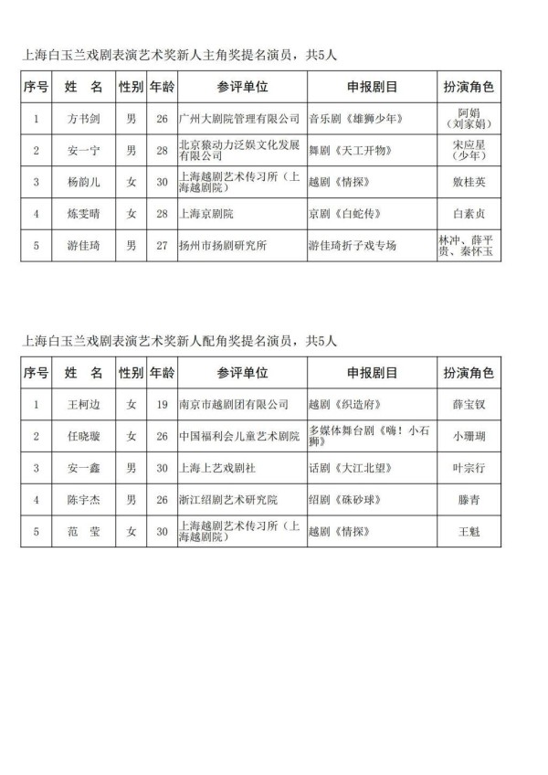 据悉,本届白玉兰戏剧奖提名奖颁奖仪式,将于4月23日在北外滩上海白玉兰广场举行。